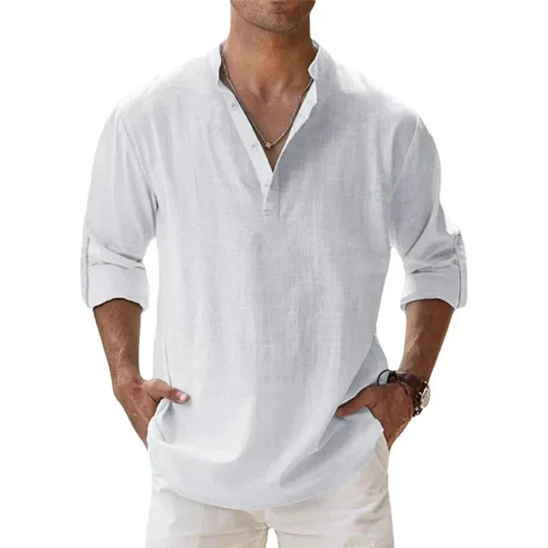Introducing the Émeric™ - a lightweight long-sleeve shirt designed for those warm days and relaxed moments. This shirt effortlessly combines breathability and comfort, making you feel at ease whether you're enjoying a day at the beach or sipping a drink on your terrace. With its modern Henley design, you can transition from casual outings to stylish dinners without a hitch.